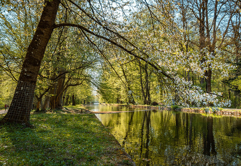 Conocemos en primer lugar los alrededores del palacio y sus canales. Ya en el interior, disfrutamos de las majestuosas salas nobles, cargadas todas ellas de historia: desde los orígenes en el siglo XVII en tiempos de Maximiliano Emanuel, hasta episodios clave para la historia de Baviera en el siglo XIX, como el nacimiento de Luis II.